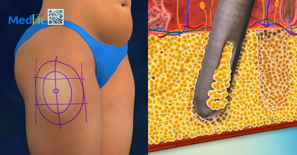 Hút mỡ đùi là thủ thuật can thiệp nhằm loại bỏ lượng mỡ dưới da dư thừa thông qua ống cannula.